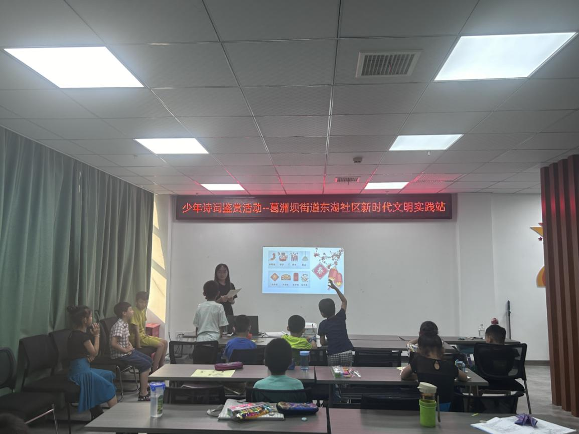 西陵区葛洲坝街道东湖社区新时代文明实践站开展丰富活跃文化生活——青少年诗词鉴赏活动